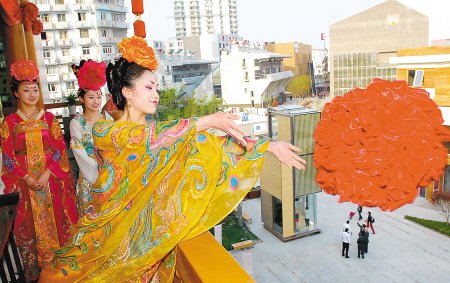 (图)西安大明宫馆里正在进行“大唐公主抛绣球招驸马”互动游戏