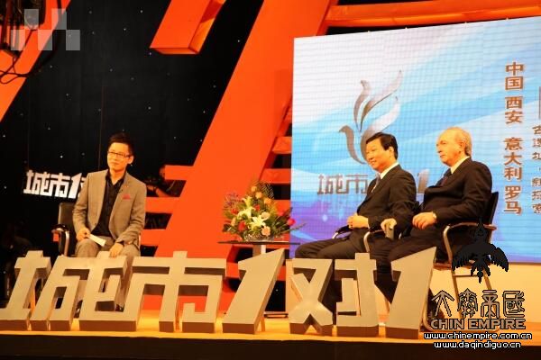 5月27日上午,“丝绸之路”的起点西安和终点罗马,两座同为世界四大文明古都的城市,就西安和罗马城市发展和大遗址保护和谐共融为话题展开讨论。西安市副市长段先念、罗马议会办公室主任维达利诺·达曲里博士、大明宫保护办主任周冰,及陕西省与意大利罗马市的文保专家做客中央电视台4套《城市一对一》栏目,进行了一场别开生面的城市对话。