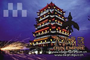 灯火辉映下的问道阁