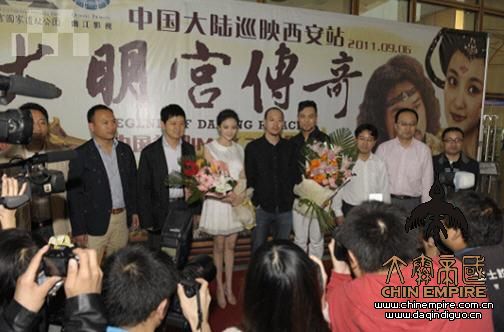由曲江影视集团、曲江大明宫国家遗址公园有限公司共同出品的中国首部IMAX 3D电影《大明宫传奇》于9月9日登陆全国3D影院。9月6日,该片在西安曲江大明宫影城举行了中国大陆巡映西安站活动,导演金铁木携主演刘雨欣、阿帕尔江出席活动并为影片造势。曲江管委会主任助理陈共德,大明宫保护办主任倪明涛,文化集团首席文化执行官、影视集团总经理贯钊一等领导应邀参加此次活动。目前,电影《大明宫传奇》在西安、北京、上海、武汉、无锡、苏州六城正在巡演,得到了众多观众的高度认可。 该片由央视著名导演金铁木执导,曾蝉联13、14届中国电影百花奖最佳女主角的宋佳领携新晋演员刘雨欣、阿帕尔江共同演绎。幕后制作更是邀请到好莱坞特效团队的加盟,为影片的高品质打下坚实基础。该片用时下热门的3D特效技术生动再现了中国历史上唐朝的繁荣昌盛景象,场面恢弘,人物刻画细腻。