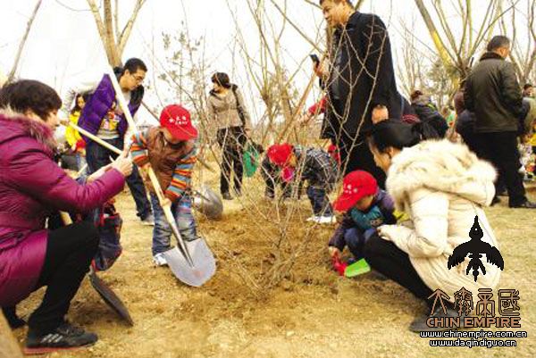 “大明宫国家遗址公园的建成,不仅在遗址保护上起到了无法替代的作用,也从根本上改变了西安北城的人居环境。今天刚好是我国第34个植树节,我也来为遗址公园种下一棵树,为保护环境尽点自己的绵薄之力。”住在大明宫国家遗址公园附近的王德兴笑着说。而家住凤城一路的杨勉蓉老师也难掩兴奋之情,她边铲土边告诉记者,通过微博了解到大明宫植树活动后,她便叫上好朋友和女儿一起前来参加。“我希望在这个缅怀历史的地方,以我们微薄的力量,能够唤起更多的人来为西安、为大明宫增添绿色。”杨勉蓉说。